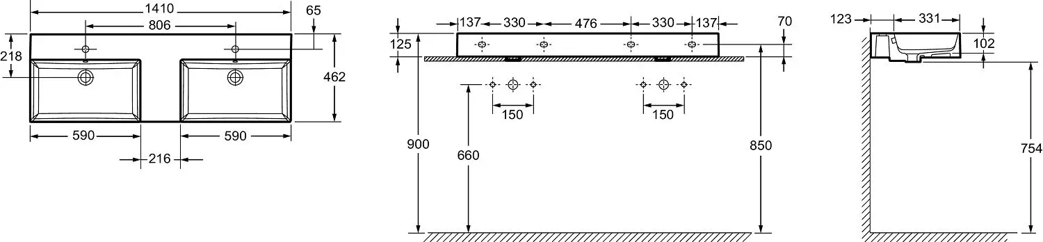 - Сифон и смеситель приобретаются отдельно