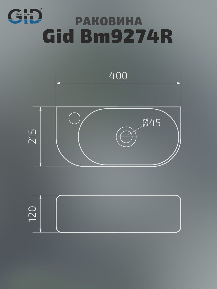 Раковина Gid Bm9274R 62204R подвесная черная матовая 40x21.5x12 купить