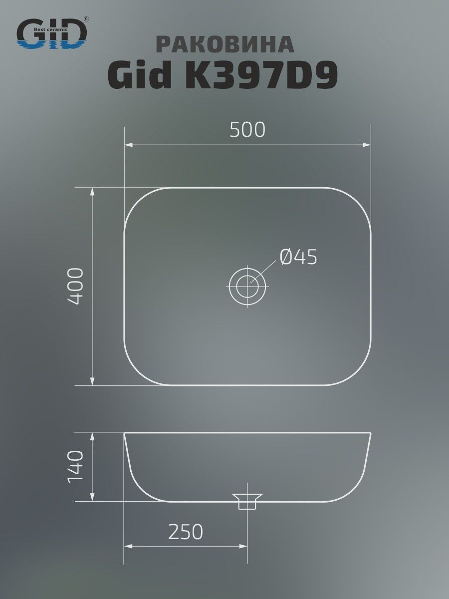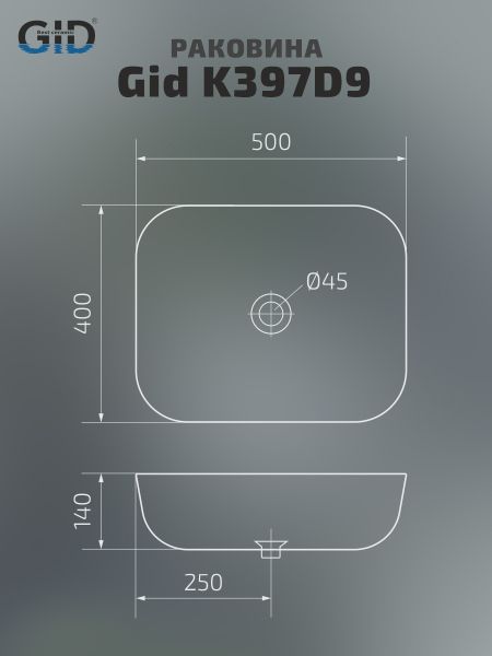 Раковина Gid K397D9 53322 накладная под камень глянцевая 50x40x14 купить