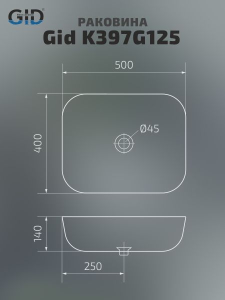 Раковина Gid K397G125 54402 накладная под камень глянцевая 50x40x14 купить