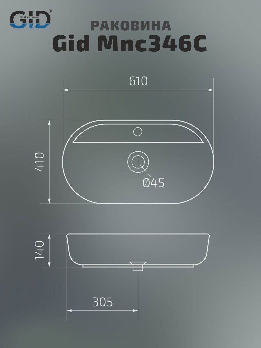 Раковина Gid Mnc346C 54470 накладная под камень глянцевая 61x41x14 купить