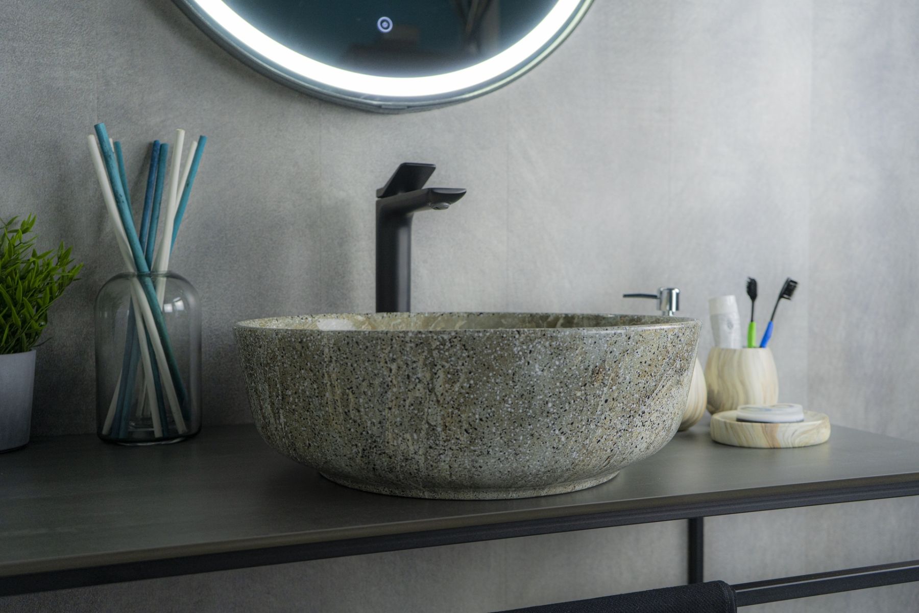 Раковины серии Esfera с круглой чашей — это эталон европейских стандартов и испанского мастерства. Раковина накладная GID Mnc498 — это стильная модель, изготовленная из высококачественной керамики. Она имеет круглую форму, что делает её практичным решением для современных ванных комнат. Дизайн раковины имитирует глянцевую поверхность натурального камня, придавая интерьеру элегантность и утончённость. Раковина устанавливается накладным способом на столешницу, что подчёркивает её современный стиль. Благодаря отсутствию отверстия под смеситель раковина позволяет реализовать различные дизайнерские решения по размещению смесителя. Раковина предназначена для бытового использования и гармонично впишется в любой интерьер ванной комнаты.