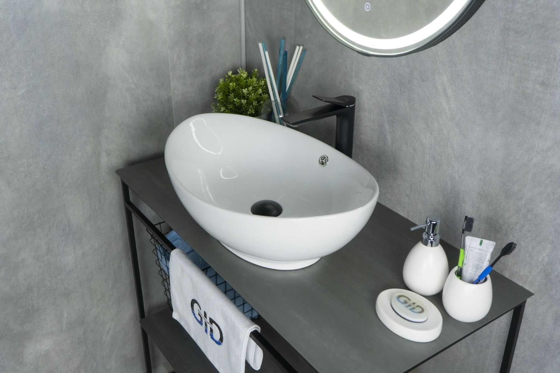 Серия Lago овальной формы — это испанское качество, соответствующее современным европейским требованиям. Накладная раковина GiD N9019 — сочетание элегантного дизайна и практичности для вашей ванной комнаты. Изготовлена из мелкопористой керамики с белым глянцевым покрытием, она придаст интерьеру свежесть и утонченность. Овальная форма обеспечивает оптимальное пространство для комфортного использования. Отсутствие отверстия под смеситель подчеркивает минималистичный стиль, а накладной способ монтажа на столешницу облегчает установку и позволяет создать современный облик ванной комнаты.