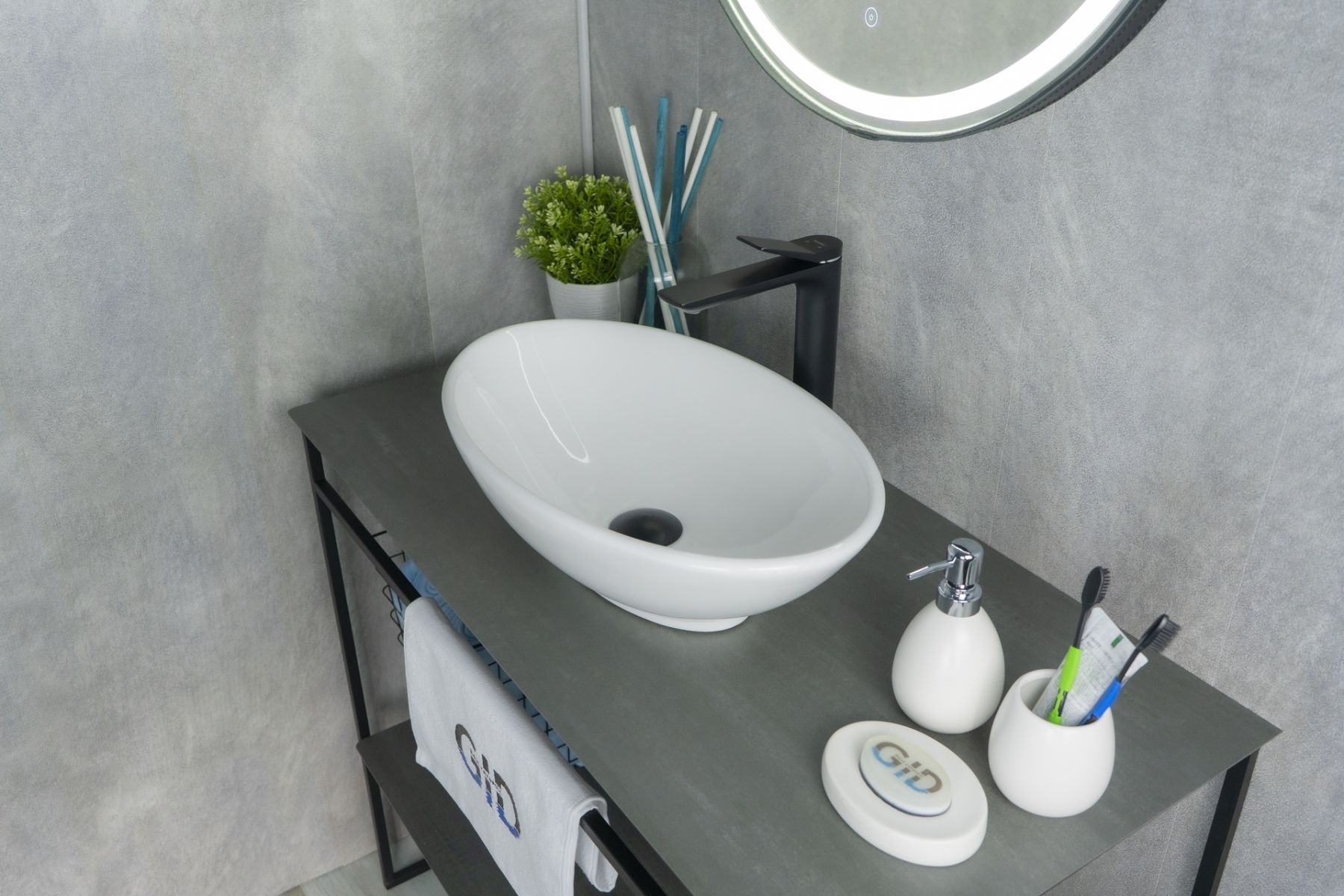 Серия Lago овальной формы — это испанское качество, соответствующее современным европейским требованиям. Накладная раковина GiD N9021 — сочетание элегантного дизайна и практичности для вашей ванной комнаты. Изготовлена из мелкопористой керамики с белым глянцевым покрытием, она придаст интерьеру свежесть и утонченность. Овальная форма обеспечивает оптимальное пространство для комфортного использования. Отсутствие отверстия под смеситель подчеркивает минималистичный стиль, а накладной способ монтажа на столешницу облегчает установку и позволяет создать современный облик ванной комнаты.