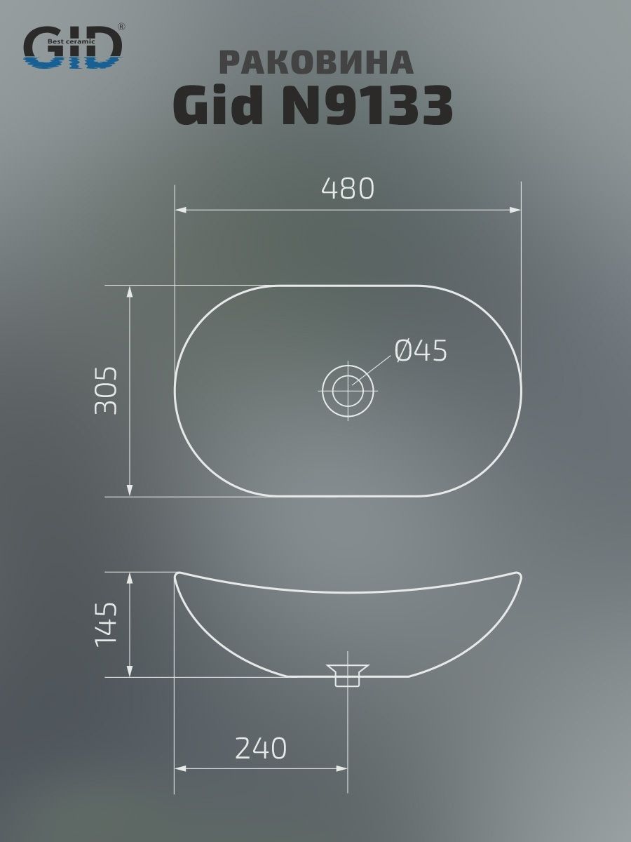 Раковина Gid N9133 51201 накладная белая 48x30.5x14.5 купить