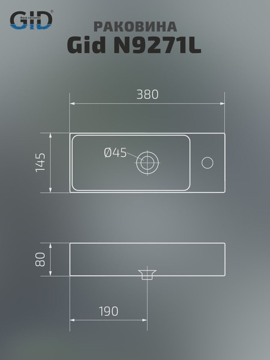 Раковина Gid N9271L 61128L подвесная белая 38x14.5x8 купить