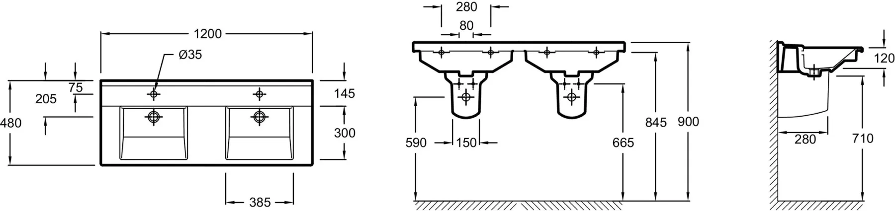 Раковина столешница двойная Jacob Delafon Struktura, арт. EXF112-00, 120х48 см, подвесная, с 2-мя отверстиями под смесители
