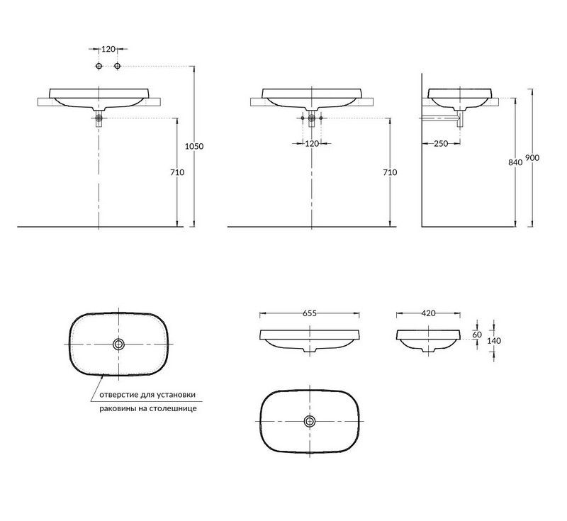 Высота раковины над столешницей 6 см. Предназначена для использования с тумбой и керамической столешницей MAGICA (приобретаются отдельно). Подходит для смесителей, устанавливаемых на столешницу, а также настенных моделей.