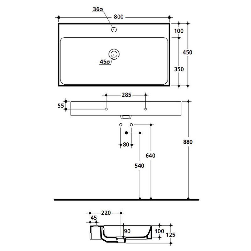 Размеры (ШхВхГ): 80х12.5х45 см.