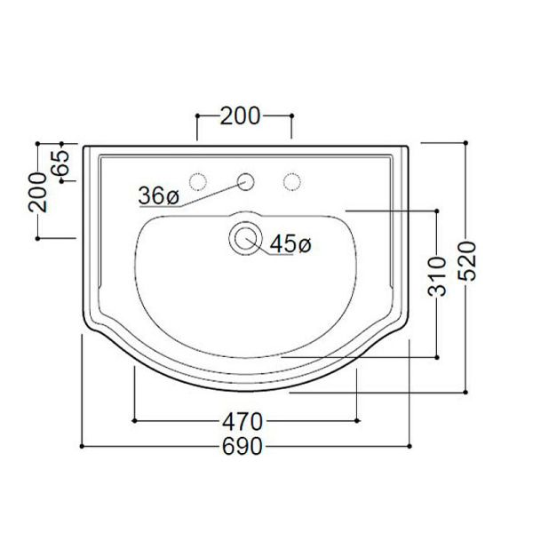 Раковина Kerasan Retro 104601*3 белая 69 смХарактеристики:Цвет: белый.