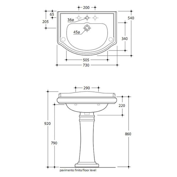 Раковина Kerasan Retro 104701*1 белая 73 смХарактеристики:Цвет: белый.