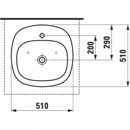 Palomba collection 51х51х16см, накладная раковина, санфарфор, с отв. под смеситель, без перелива, с отверстием для смесителя, арт. 8.1280.1.000.111.1, Laufen
