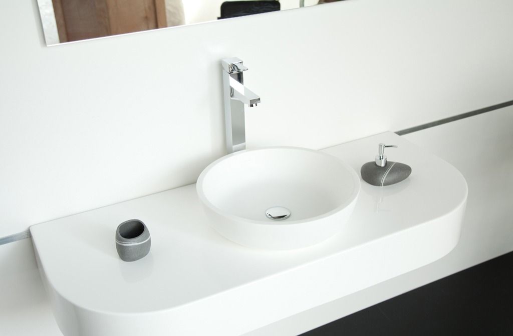 Раковина из искусственного камня для ванной комнаты круглой формы. Способы установки - на поверхность столешницы или мебели накладным способом сверху или же путем вклейки в столешницу любого цвета, создавая цельную поверхность, смотрится как единое изделие. Последняя особенность расширяет границы использования Isola Bella: вариации цветового решения столешницы, ее размера и формы позволяют реализовать любую дизайнерскую задумку. Модель имеет небольшую высоту и относится к категории компактных решений. Используется в том числе в общественных пространствах, где сразу несколько раковин размещаются на единую столешницу. Isola Bella имеет матовую, бархатистую поверхность. Полимерный материал принимает температуру окружающей среды, поэтому в жилом пространстве данная модель раковины всегда будет приятной на ощупь.