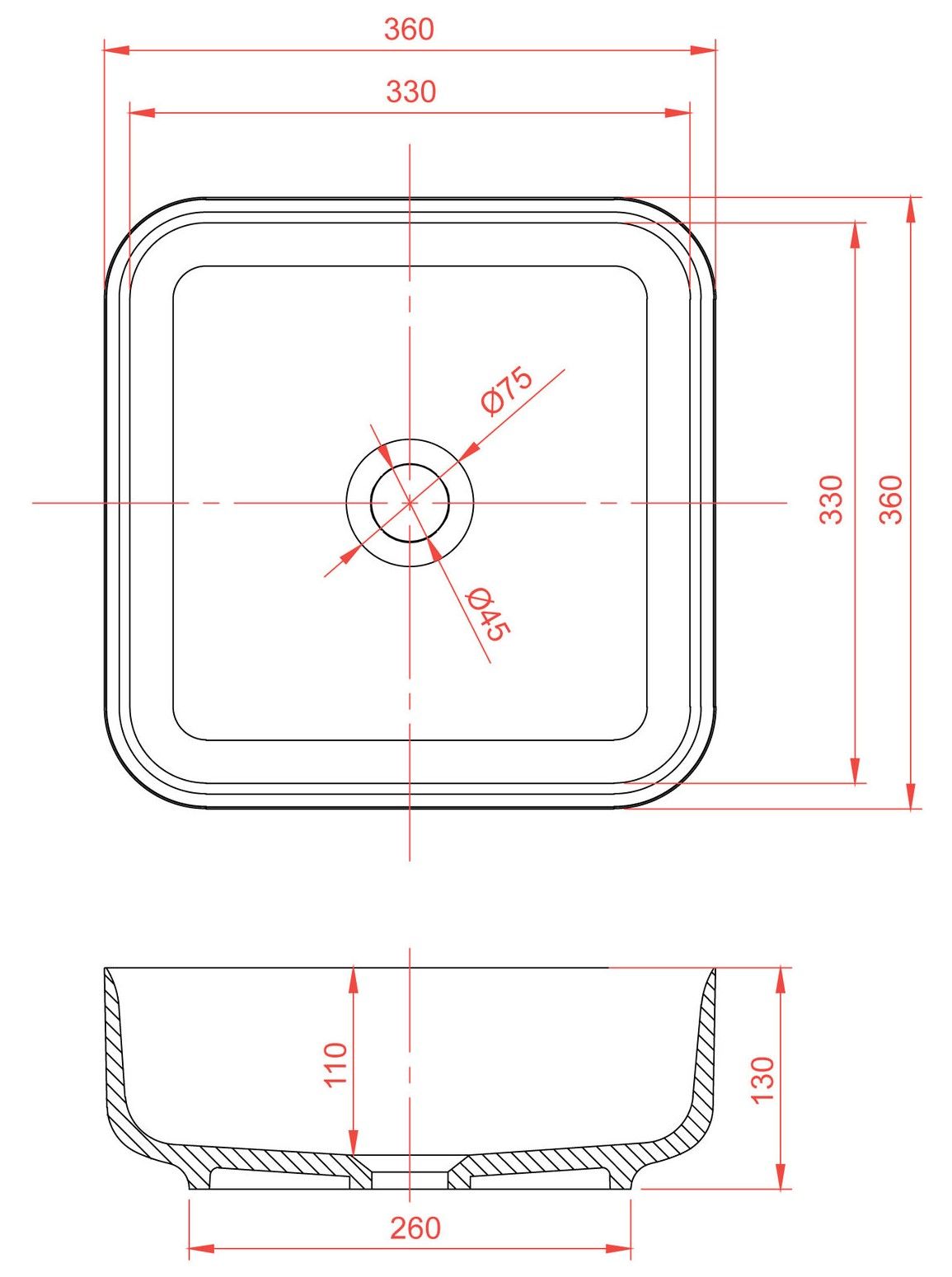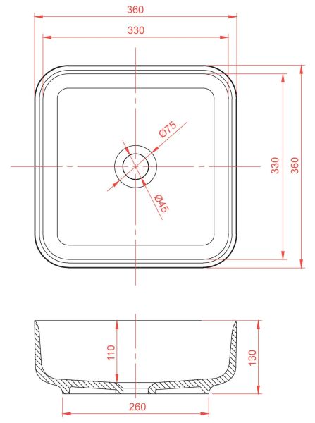 ДxШxВ: 360x360x130 мм