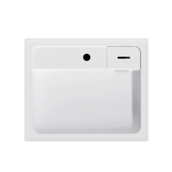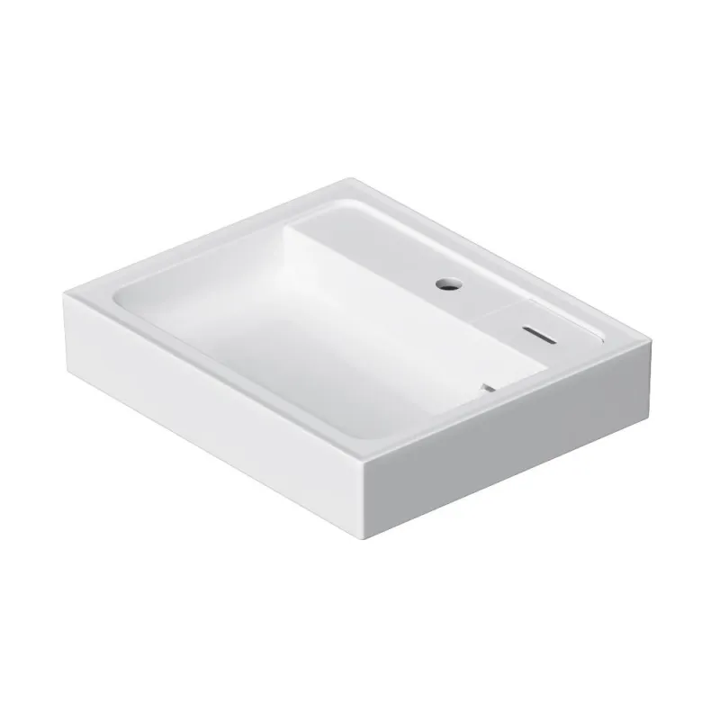 Дизайнерская раковина теперь из белоснежного сантехнического фарфора - долговечного, прочного материала, обладающего высокой гигиеничностью. Модель имеет защитный бортик от пролива воды, скрытый слив и съемную мыльницу.