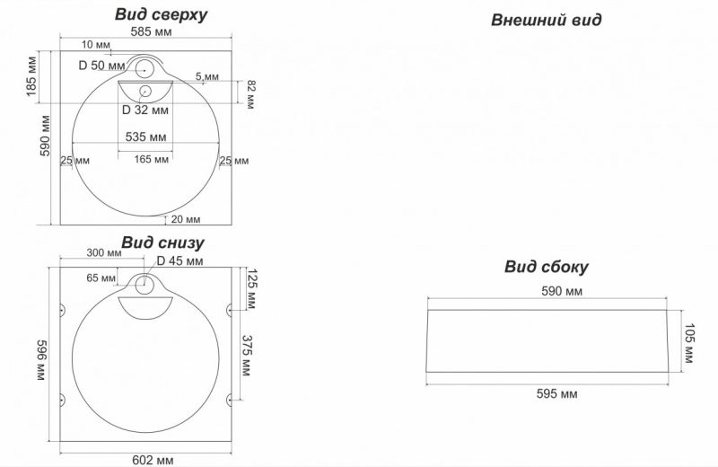 - Размер: 602х595х105 мм