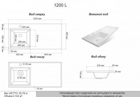 Раковина над стиральной машиной Stella Polar Мадлен 120 L белый SP-00000026 купить