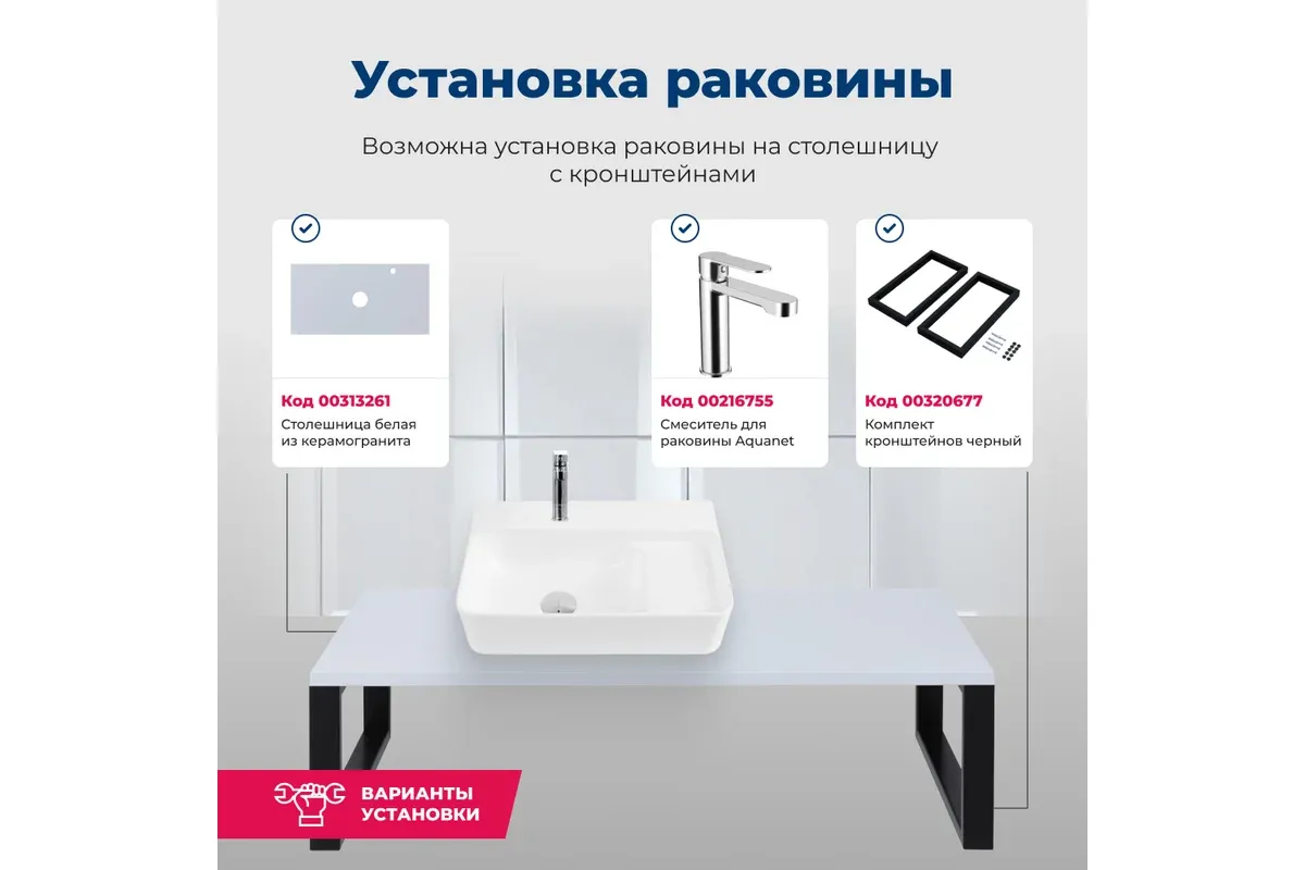 ВНИМАНИЕ!!! Допустимые размеры раковины могут варьироваться ± 15 мм.