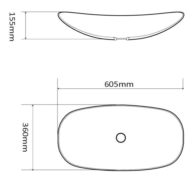 Раковина керамическая 60.5 х36 х 15.5 см, накладная без перелива
