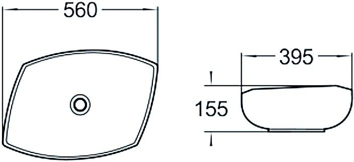 Раковина керамическая 56 х 39.5 х 15.5 см, накладная без перелива, дополнит современные интерьеры ванных комнат в различных цветовых гаммах.