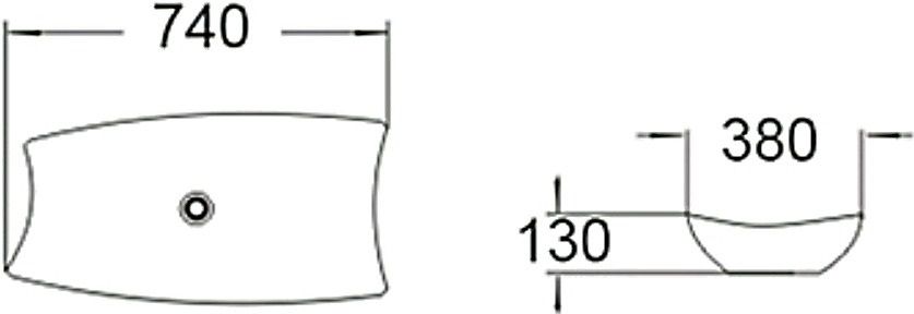 Раковина керамическая 74 х 38 х 13 см, накладная без перелива, дополнит современные интерьеры ванных комнат в различных цветовых гаммах