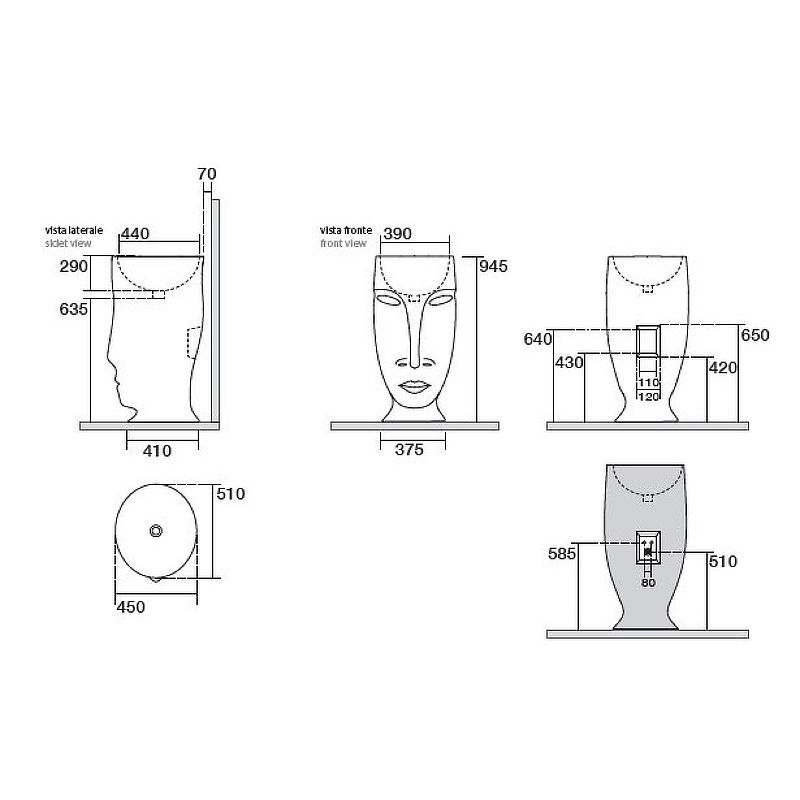 Раковина напольная Kerasan Artwork Moloco, слив в стену, цвет bianco-argento серебро, 474086Раковина свободностоящая "MOLOCO", слив в стену: