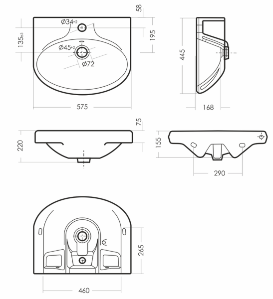 Комплектация: умывальник, кольцо перелива