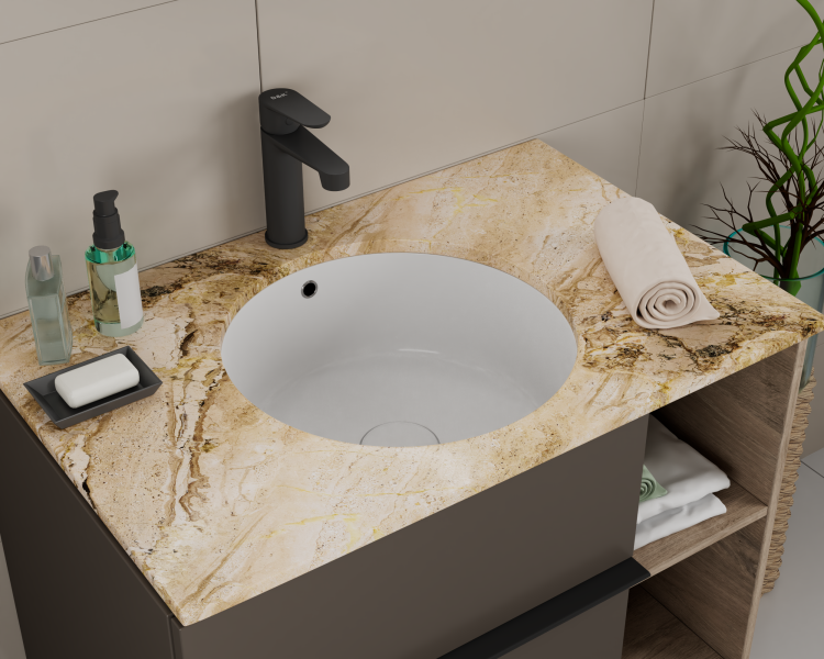 Монтаж производится под столешницу, а это значит, что на поверхности не будет швов, в которых могла бы скапливаться грязь.