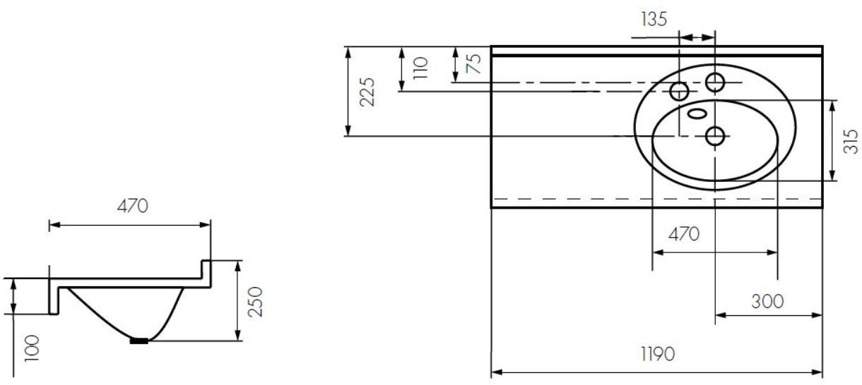 Раковина подвесная Акватон Отель правая 120см белый 1A70103NOT01R
