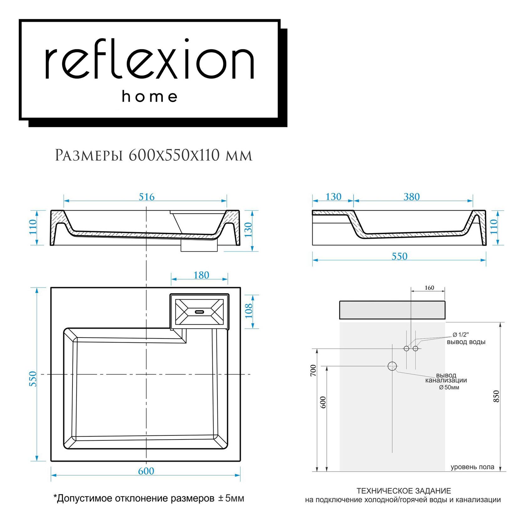 Раковина Reflexion Delta RX6055DE белая 60x55