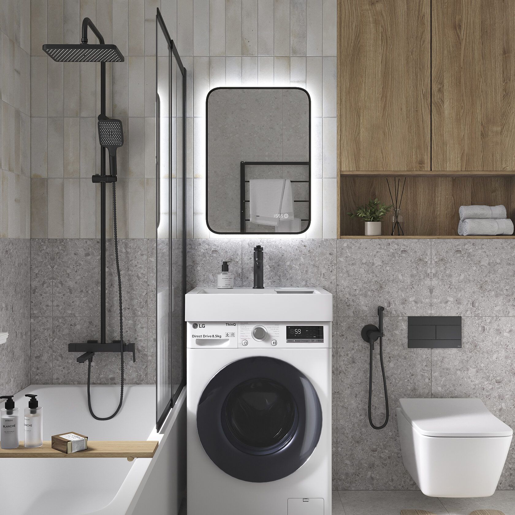 Раковина Reflexion Tetra спроектирована специально для установки над стиральной машинкой. Она имеет неглубокую чашу и горизонтальный слив. Благодаря ему умывальник из искусственного мрамора для ванной комнаты отводит воду в сифон, который проходит позади стиральной машины. Это защищает технику от случайных утечек.