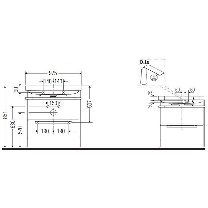 Раковина с консолью Duravit Happy D.2 Plus HP4838O8080 БелаяDuravit Happy D.2 Plus HP4838O8080 Консоль напольная с раковиной 97*49 см (хром). Консоль напольная с умывальником 975х490х850 мм, с 1 отверстием под смеситель, 1 ящик коричневый, выпуск и сифон в комплекте, цвет белый глянцевый/хром, гарантия 5 лет, Германия.