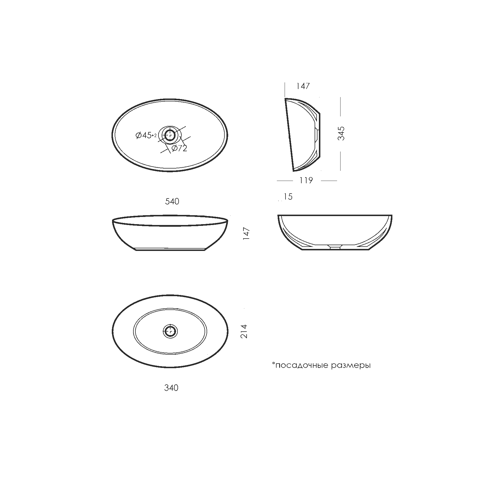 Раковина Sanita Luxe Ringo Cut WB.CT/Ringo/54-N.Cut/WHT.G/S1 54 см