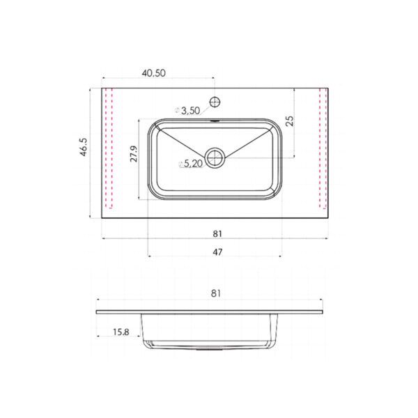 810x140x470Отверстия под смеситель: