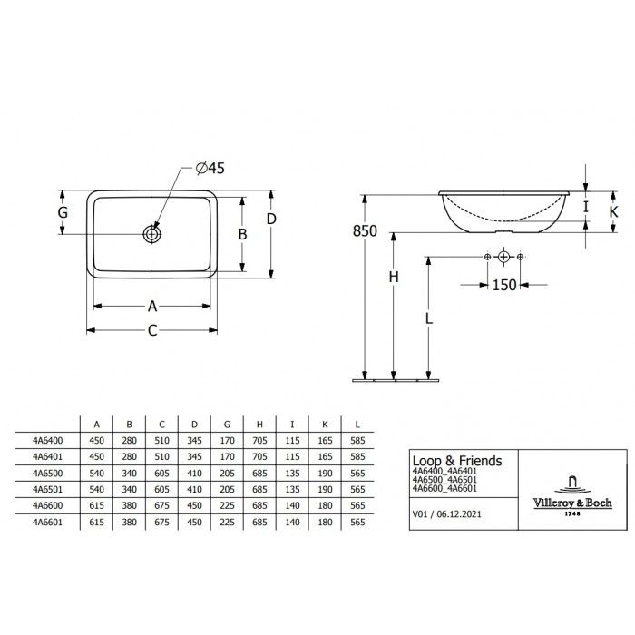Раковина встраиваемая Villeroy Boch Loop & Friends 4A6500R1 белый купить