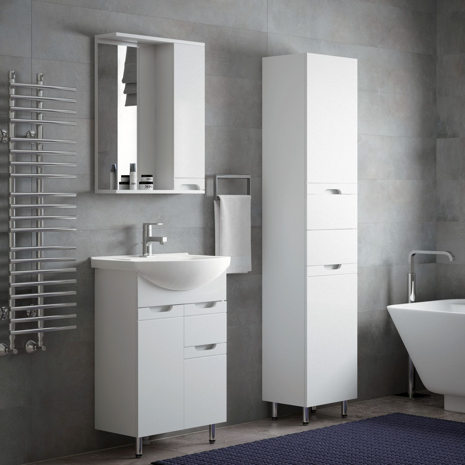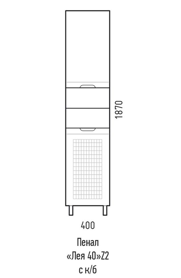 Шкаф-пенал Corozo Лея 40 Z2, 40 см, с бельевой корзиной, цвет белый, SD-00000099Коллекция мебели для ванных комнат "ЛЕЯ" создана для тех, кто ценит простоту форм, сочетание округлых и прямых линий, удобство эксплуатации. У мебели коллекции «ЛЕЯ» корпус выполнен из ЛДСП, фасады - из влагостойкой плиты МДФ, покрытие – пленка ПВХ. Мебель оснащена доводчиками. Модели пенала разделена на две секции (верхняя и нижняя) с распашными дверцами и двумя выдвижными ящиками по центру. Высота каждого ящика по 110 мм. В верхней части расположены две регулируемые по высоте вкладные полки, нижняя секция представляет собой откидную дверь с корзиной для белья. Фурнитура с лицевой стороны фасадов отсутствует, вместо нее предусмотрены интегрированные ручки с декоративной полосой тонкой фрезеровки. Бесшумность и долговечность эксплуатации обеспечивают надёжные системы мягкого закрывания – роликовые направляющие и петли с доводчиками.