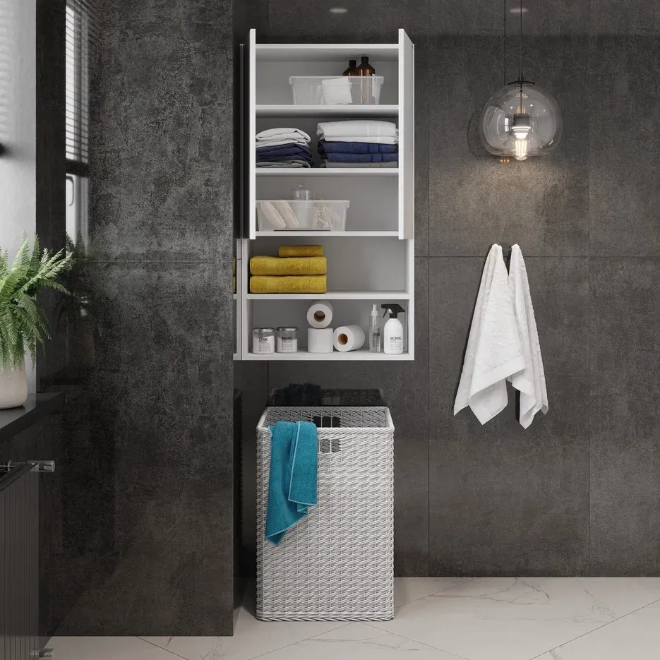 Навесной шкаф для ванной комнаты Onika Маркус 60, благодаря лаконичной прямоугольной форме и универсальному белому цвету, подойдет к любому интерьеру ванной комнаты и не займет много места.