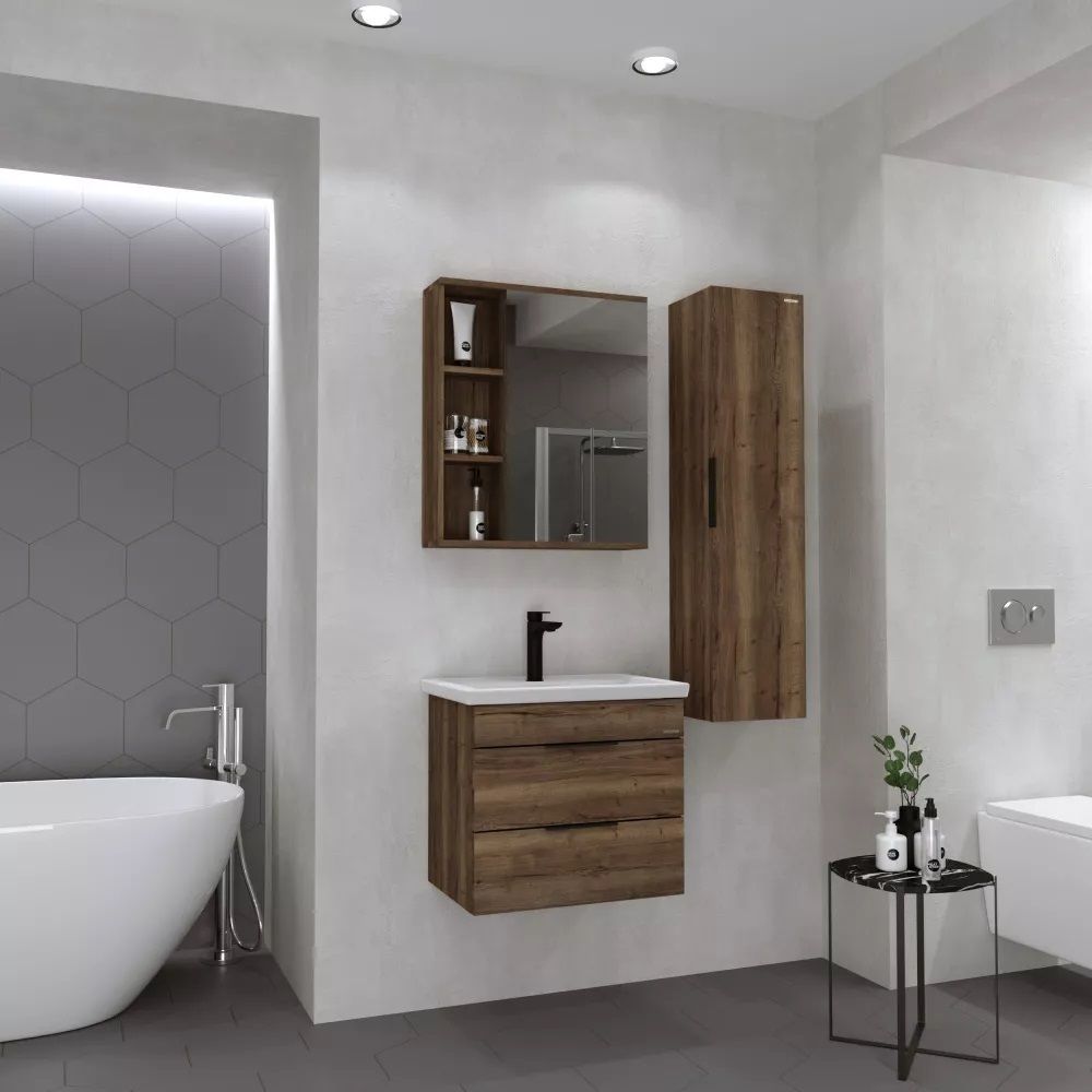 Шкаф-зеркало Форта 60 см - роскошная текстура и темный цвет дуба придают зеркалу сочетание современного дизайна.