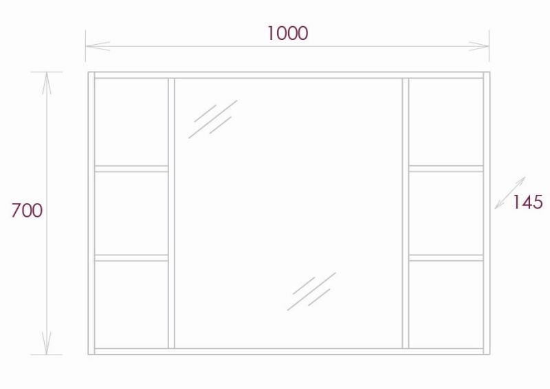 6 открытых полок по бокам от зеркала обеспечивают быстрый доступ к часто используемым аксессуарам, место под зеркалом создано для косметических средств или декоративных элементов.