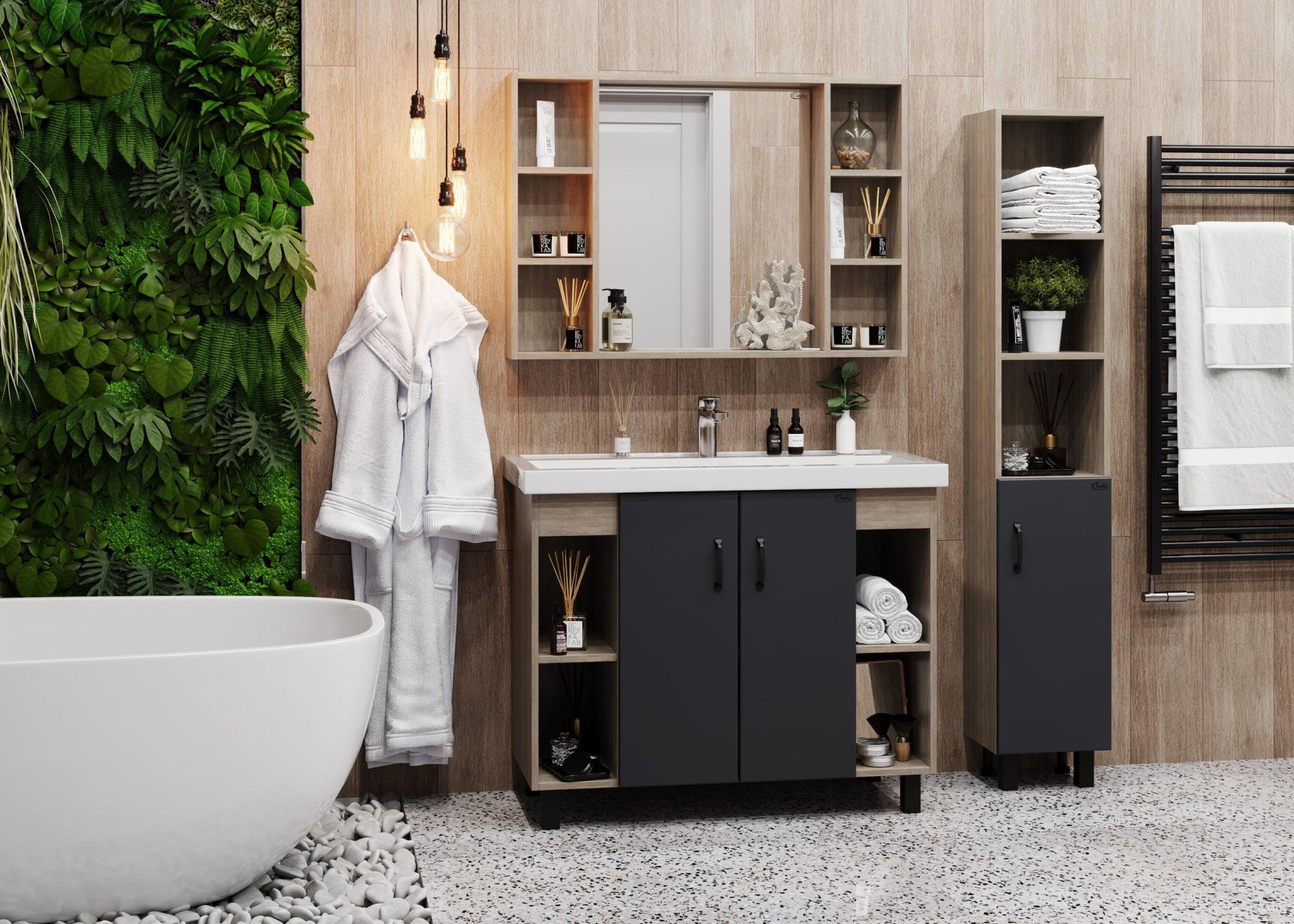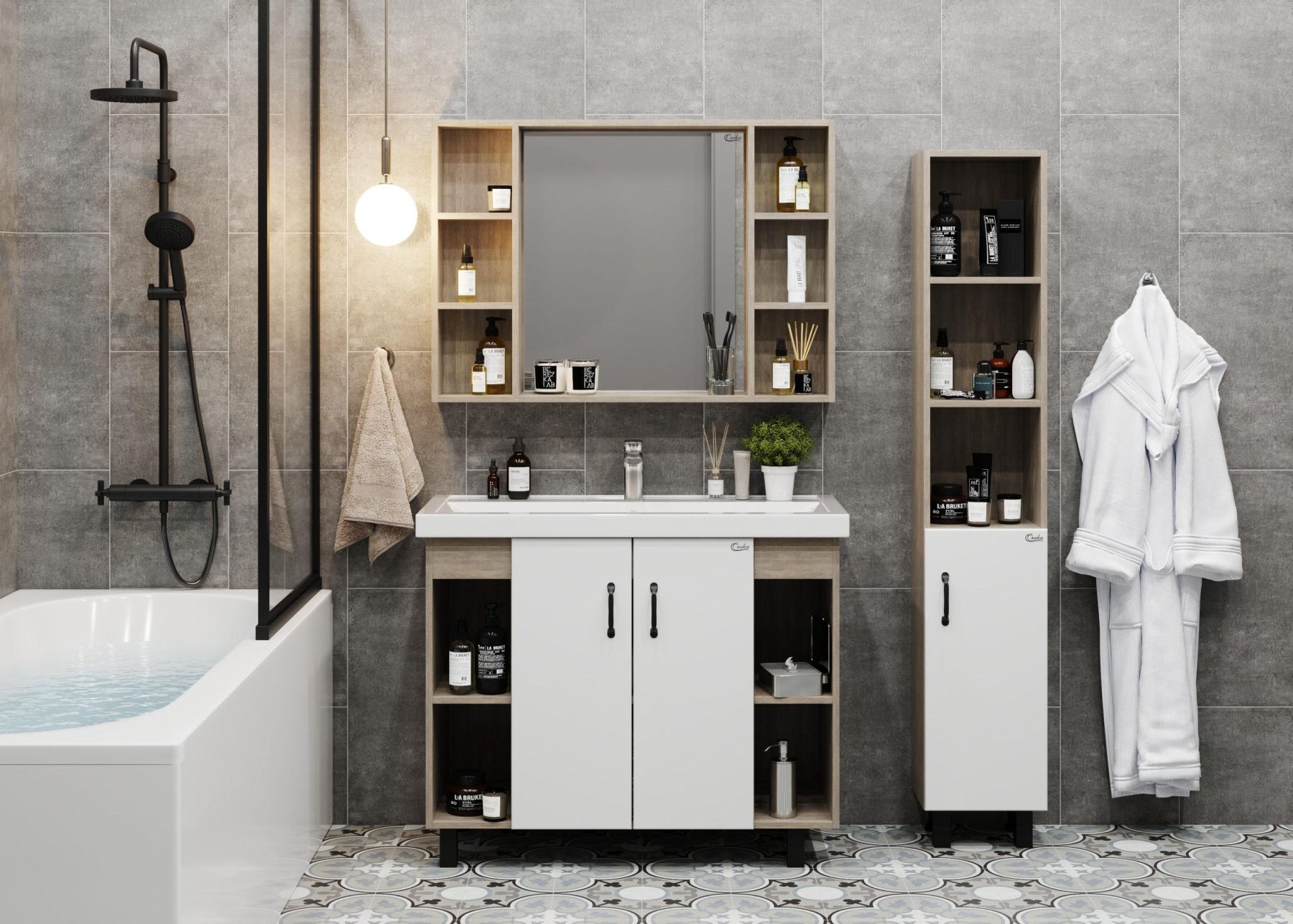 Зеркальный шкаф Onika ТИМБЕР 100 отражает современные тенденции в дизайне мебели для ванных комнат: минимализм с простыми и понятными формами, цвета дуба с роскошной текстурой, отсутствие лишних деталей.