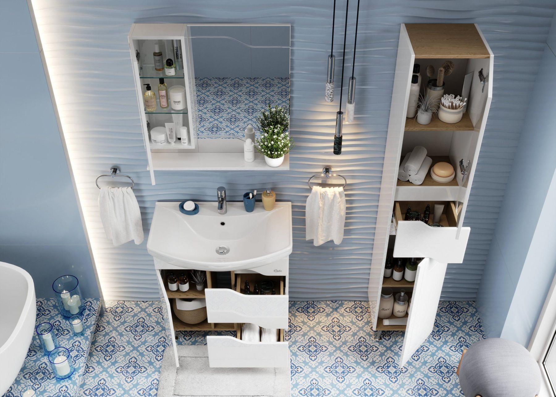 Каждая деталь подвесного зеркального шкафа Onika ВЕРОНЭЛЛА 75 отражает индивидуальность владельца, создавая безупречный стиль и элегантность ванной комнаты.