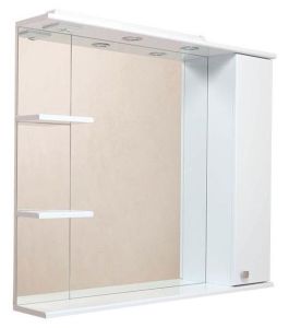 Источник света шкафа - два врезных светодиодных модуля, дополненных механическим выключателем и встроенной розеткой. Корпус шкафа-зеркала выполнен из ЛДСП, фасад - из ЛМДФ в пленке, устойчивых к механическим воздействиям, перепадам температур и высокой влажности.