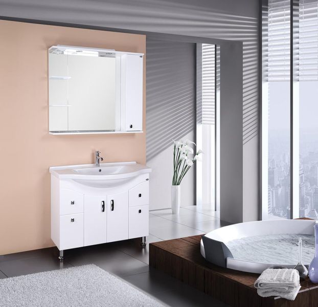 В зеркальном подвесном шкафе Onika ЭЛЬБРУС 100 белоснежный глянец фасада подчеркивается оригинальной хромированной фурнитурой и простой изысканной геометрией линий.