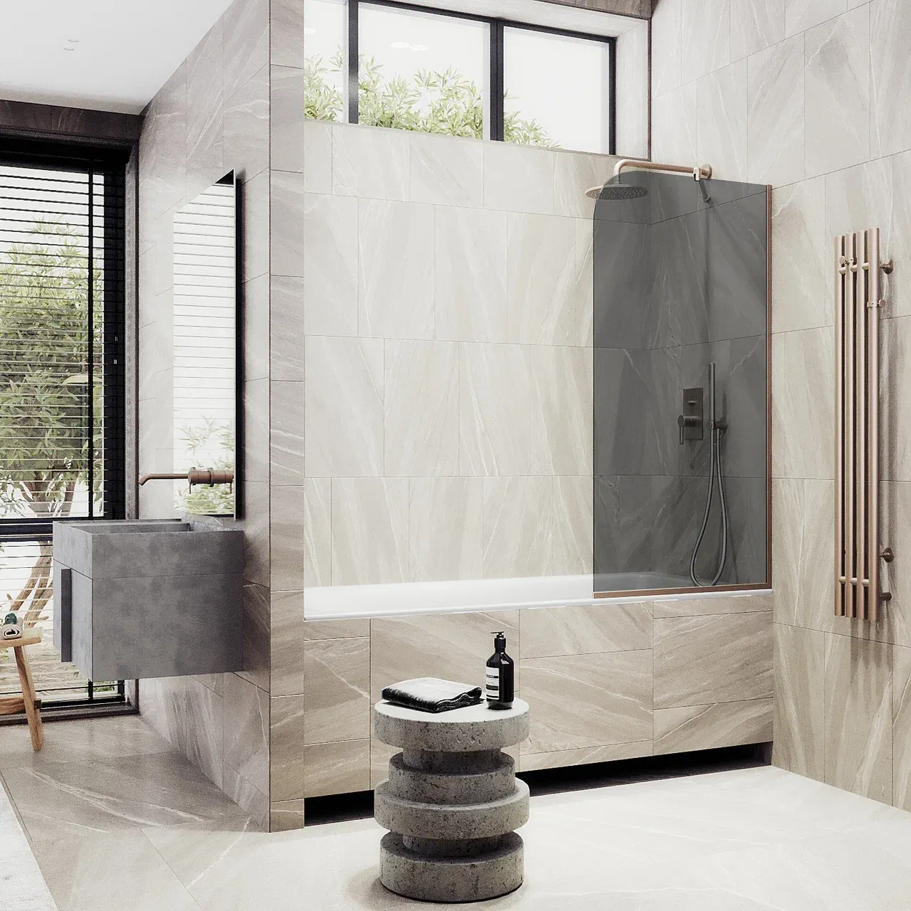 Стеклянная шторка обладает привлекательным внешним видом и может стать ярким акцентом в интерьере. Ее прозрачность и блеск позволяют создать эффект легкости, ощущение чистоты и порядка в ванной комнате, а также подчеркивает стиль и изысканность ванной комнаты.