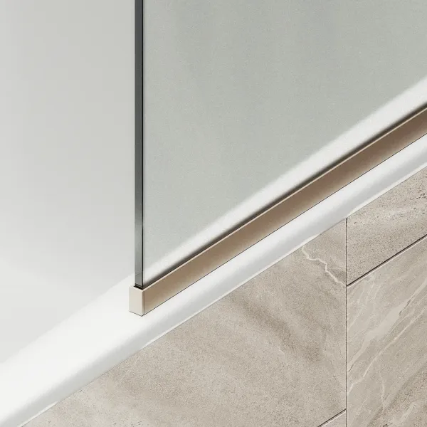 Монтаж осуществляется с помощью алюминиевого профиля, что обеспечивает надежность крепления и безопасность использования стеклянной перегородки для ванной. Также, шторка оснащена специальным уплотнителем, который предотвращает попадание воды на пол ванной комнаты. Закаленное стекло, цвет Сатин, толщина 8 мм 1400х300 мм - 1 шт.