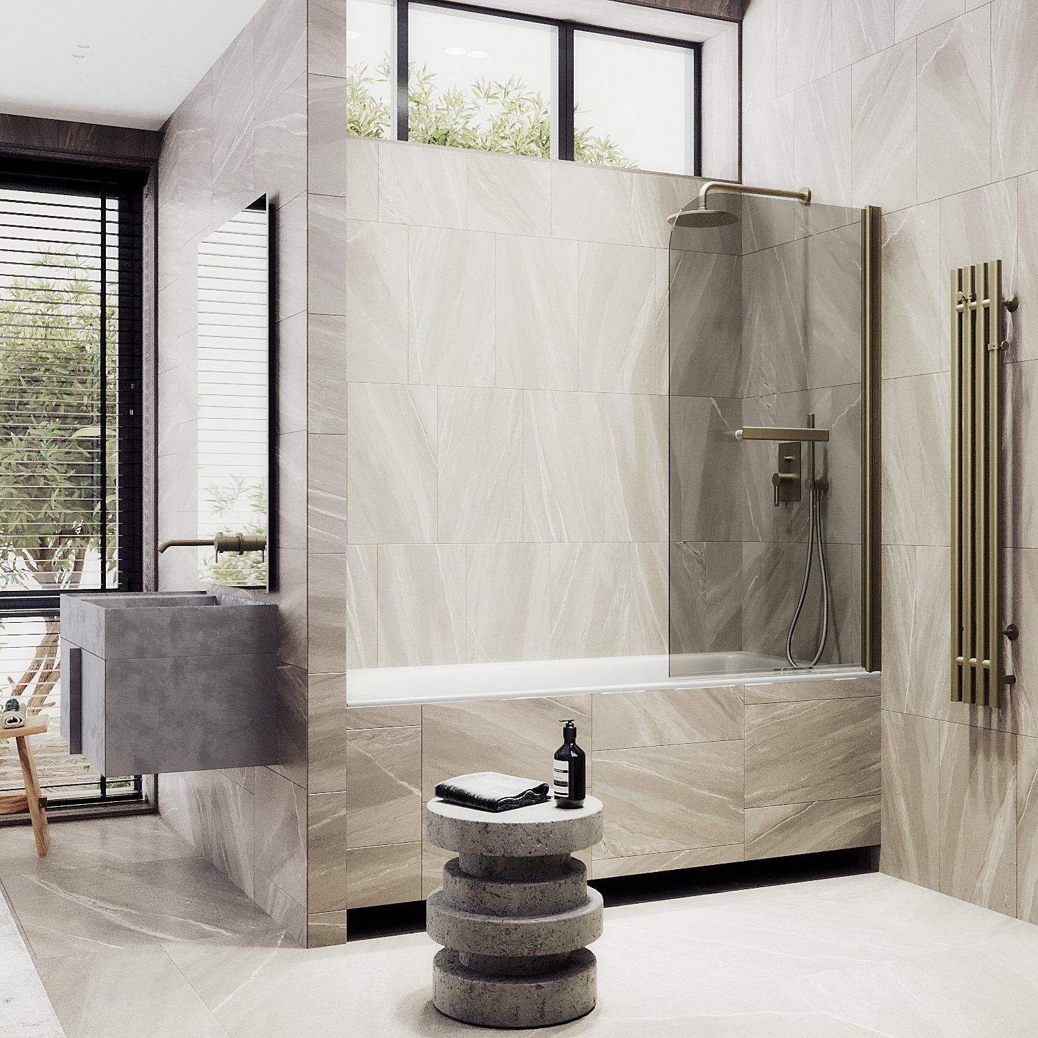 Стеклянные шторки для ванны на монопетле – это стильное и функциональное дополнение для Вашей ванной комнаты. Они изготовлены из закаленного стекла, что делает их прочными и долговечными. Монопетля обеспечивает удобное открывание и закрывание шторки, а также надежную фиксацию ее на ванне. Такие шторки легко моются и не боятся воздействия воды, что делает их идеальным выбором для ванной комнаты. Полотенцесушитель, интегрированный в стеклянную шторку, позволяет быстро высушить полотенца и другие текстильные изделия. Закаленное стекло, цвет бронза, толщина 6 мм 1400х440 мм - 1 шт.