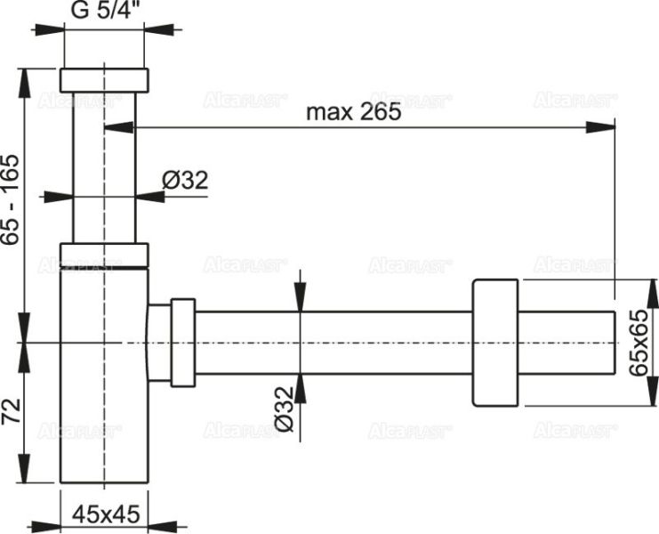 Сифон для раковины AlcaPlast Design цельнометаллический квадратный A401 купить