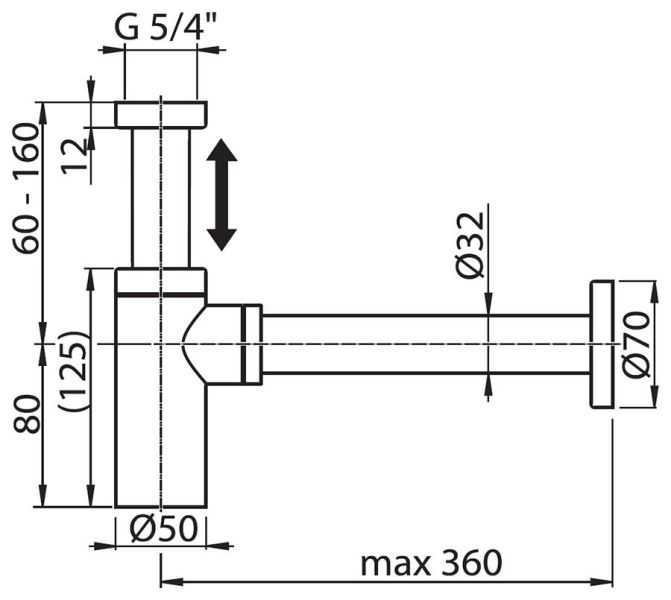 Хромированный телескопический сифон из латуни.
