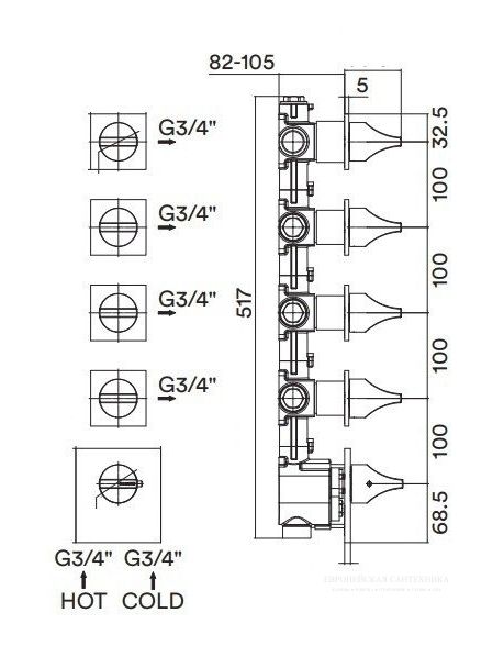 Скрытая часть для термостатического смесителя Bossini Z030275000 на пять выходов купить