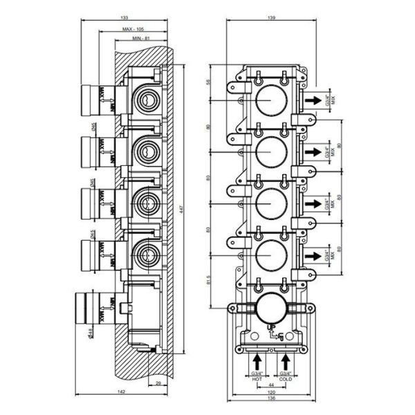 Скрытая часть для термостатического смесителя с четырьмя независимыми позициями Gessi Universale 09268.031